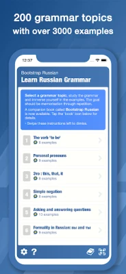 **Bootstrap Russian Grammar** ti guida attraverso le intricate strutture della grammatica russa con un approccio meticolosamente strutturato e progressivo. Ogni concetto viene presentato seguendo un ordine logico di importanza, garantendo un'esperienza di apprendimento coerente e cumulativa. Lontano da regole astratte, l'app introduce centinaia di nuove parole all'interno delle spiegazioni grammaticali, permettendoti di espandere il tuo lessico e di vedere la grammatica applicata in contesti pratici. Ogni 'argomento' è un modulo autosufficiente, che si basa incrementamente sulle conoscenze acquisite in precedenza.