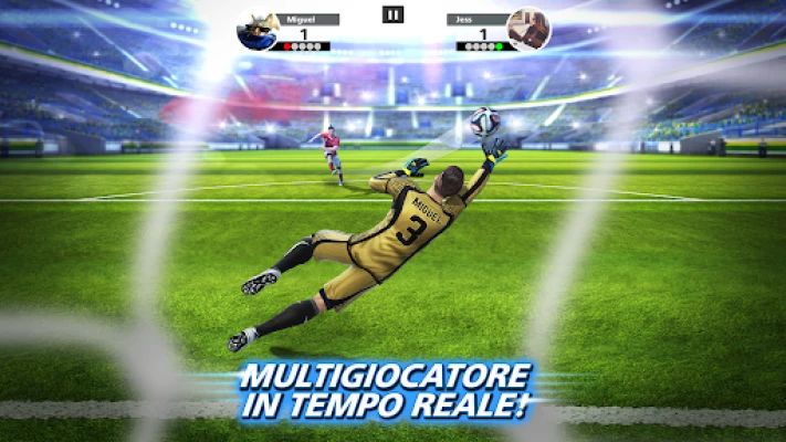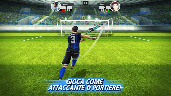 Vivi l'emozione del calcio in intense sfide uno contro uno! Gioca sia come attaccante implacabile che come portiere insuperabile. Metti alla prova le tue abilità contro amici o competi con giocatori di tutto il mondo in partite adrenaliniche che ti terranno col fiato sospeso.