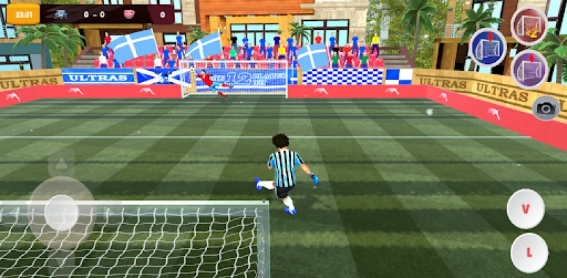 L'immersione è garantita da una fisica del pallone estremamente realistica e da quattro diverse angolazioni della telecamera, che ti permettono di cogliere ogni istante cruciale del match. Scatena la tua creatività con tiri speciali: precisi al volo, deliziosi pallonetti o imparabili conclusioni a effetto. Ogni fischio, ogni esultanza, ogni coro dei tifosi e lo sventolio delle bandiere contribuiscono a creare un'atmosfera da stadio autentica, accompagnata da musiche coinvolgenti ed effetti sonori impeccabili. Goalie Striker Football non è solo un gioco, è una celebrazione del calcio in ogni sua sfumatura.