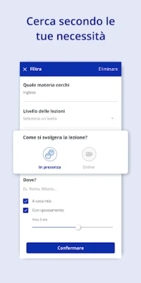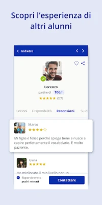 Sia che tu stia cercando di imparare o di insegnare, letuelezioni facilita una comunicazione diretta e illimitata tramite messaggistica istantanea integrata. Questo ti permette di esplorare diverse opzioni e scegliere la combinazione che più ti convince, senza alcun vincolo. La gestione finanziaria è altrettanto trasparente: il pagamento avviene direttamente tra studente e insegnante al termine della lezione, senza alcuna intermediazione o costo aggiuntivo da parte di letuelezioni. Unisciti ai milioni di utenti che hanno già sperimentato l'efficacia di letuelezioni nel connettere talenti e necessità educative, per un percorso di apprendimento o insegnamento senza costi nascosti e con la massima libertà.