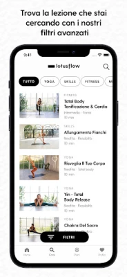 Immergiti in centinaia di lezioni di yoga meticolosamente preparate da istruttori specializzati in vari stili, adatte a ogni livello, dal principiante all'esperto. Vuoi padroneggiare una nuova abilità? Le nostre sezioni dedicate alle 'skills' ti guidano passo dopo passo per affinare il tuo handstand, migliorare le spaccate o esplorare tecniche di respirazione avanzate. Per il tuo allenamento fisico, Lotus Flow propone sessioni di fitness dinamiche con professionisti che ti sfideranno con HIIT, cardio, esercizi mirati per core, braccia, gambe e molto altro, garantendoti risultati concreti e un approccio unico al movimento.