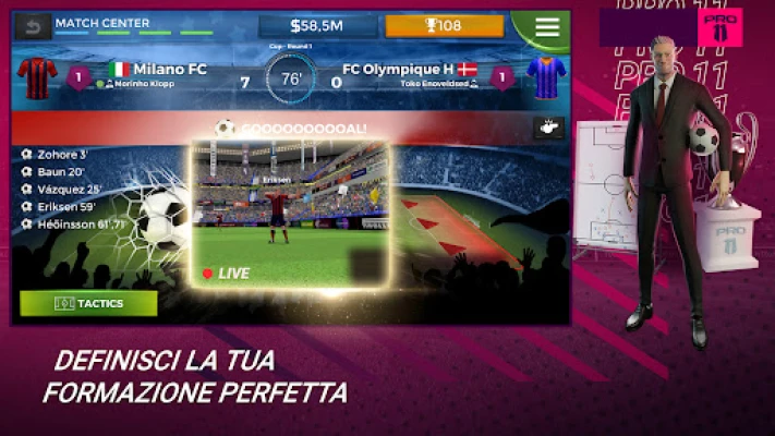 L'esperienza non si ferma al campo: affronta sfidanti da tutto il mondo nelle avvincenti partite multiplayer in tempo reale. Metti alla prova le tue tattiche contro amici o rivali, vivendo l'adrenalina del calcio quando e come vuoi tu. La grafica accattivante di Pro 11, con movimenti dei calciatori catturati in 3D, ti regala un'esperienza visiva di alto livello e momenti salienti che ti terranno incollato allo schermo, rendendo ogni gol, ogni parata e ogni vittoria intensamente reale. Unisciti a una comunità globale di appassionati, crea legami con i tifosi della tua squadra e massimizza le tue ricompense.