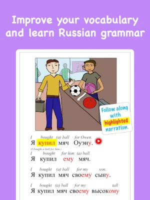 Ampliare il tuo vocabolario non è mai stato così semplice e piacevole. Con Russian Readers, ogni singolo termine russo all'interno delle storie è corredato da una chiara traduzione in inglese, garantendoti di comprendere sempre il contesto e di non sentirti mai perso tra le nuove espressioni. E quando ti sentirai pronto a mettere alla prova le tue crescenti abilità, un semplice tocco ti permetterà di nascondere la traduzione in pagina. Questa funzionalità è perfetta per sfidare te stesso, verificare i tuoi progressi e consolidare la memorizzazione delle parole in maniera autonoma, trasformando ogni lettura in un test di comprensione personalizzato.